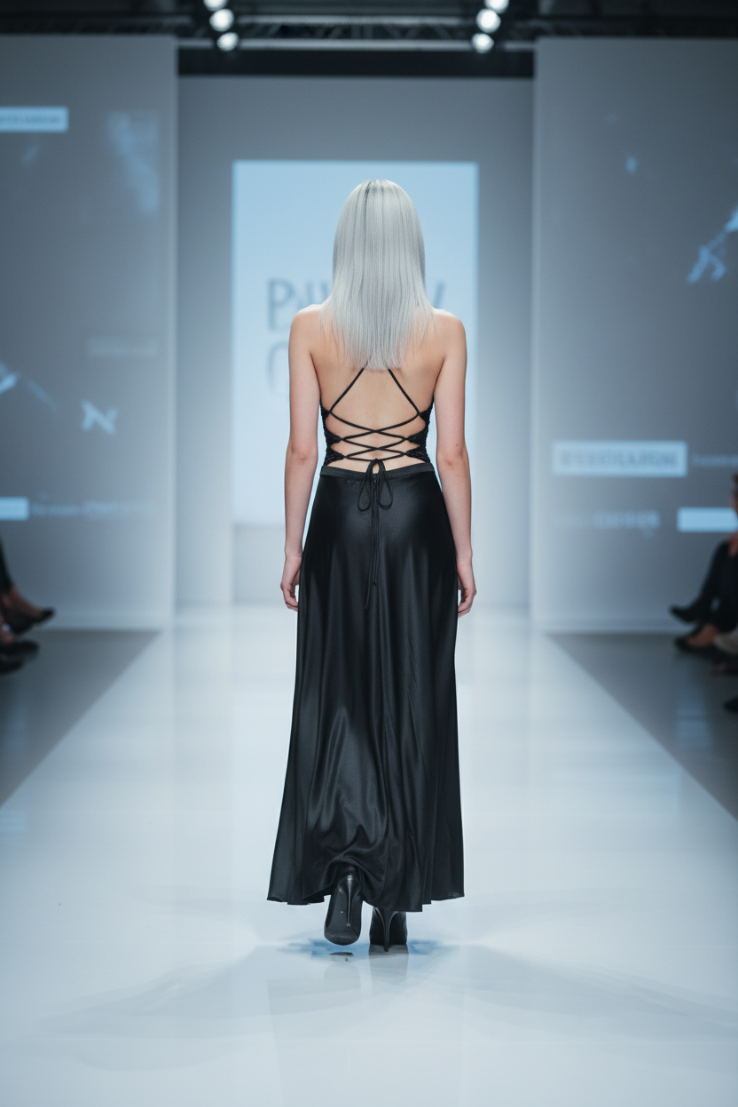 bustino con scollatura a V trasparente ricamato con perline e strass tono su tono, regolabile con corsetto intrecciato sulla schiena