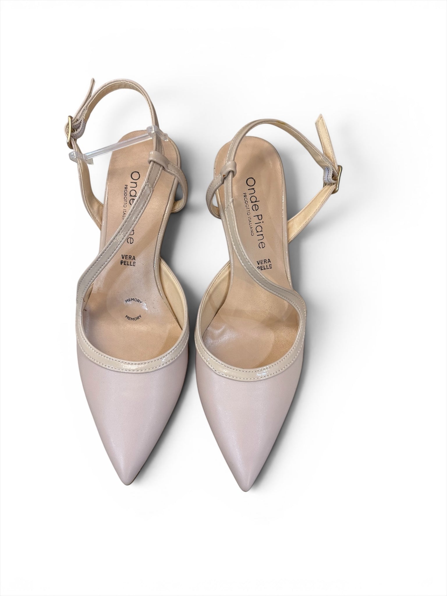 scarpa con punta chiusa in pelle e cintina trasversale in pelle lucida tono su tono