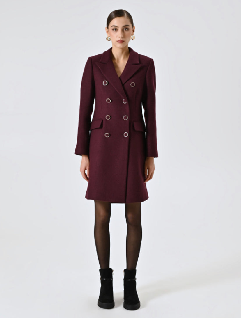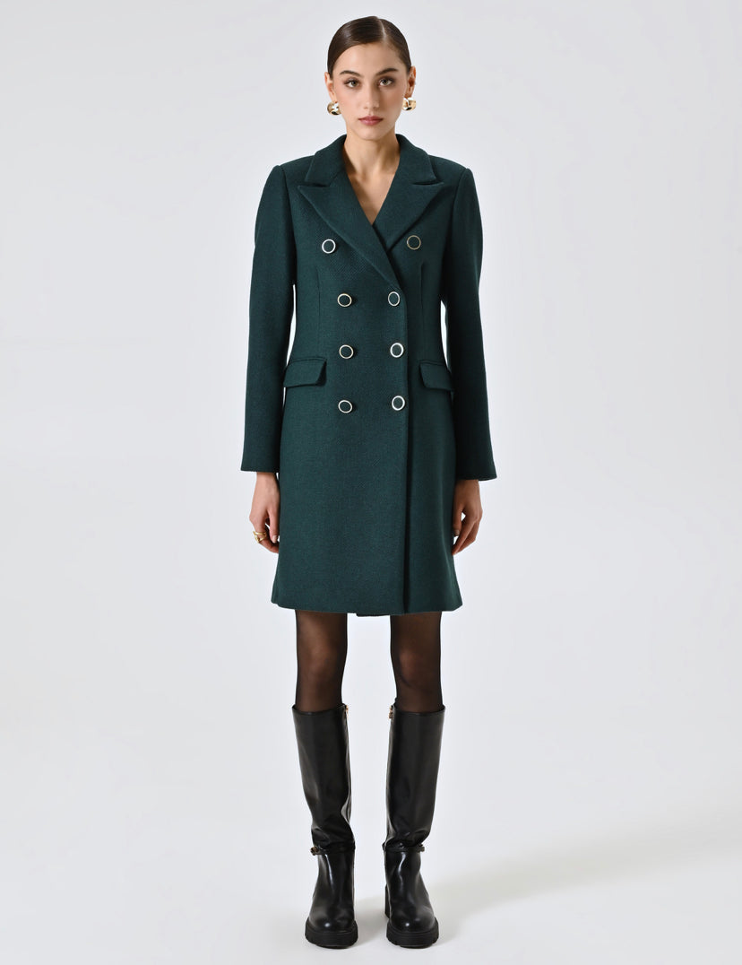 Cappotto doppio petto dal taglio avvitato e lunghezza midi.
