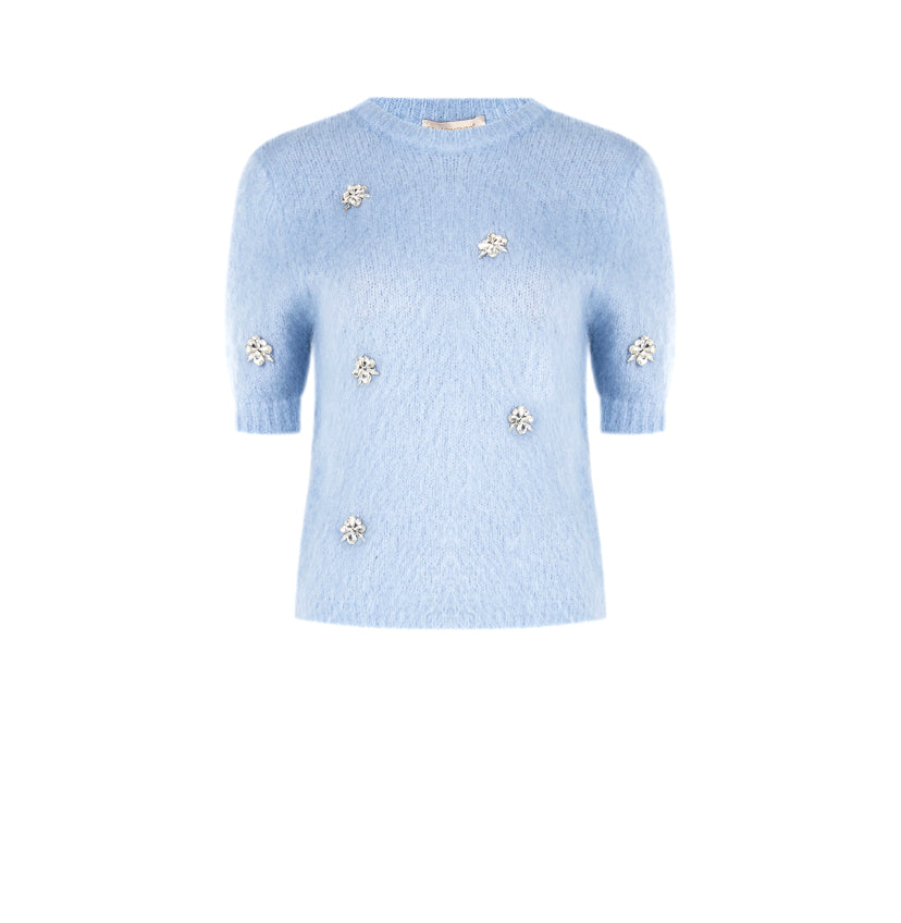 Maglione soffice strass in misto lana mohair ha un effetto peluche, morbido e leggero.