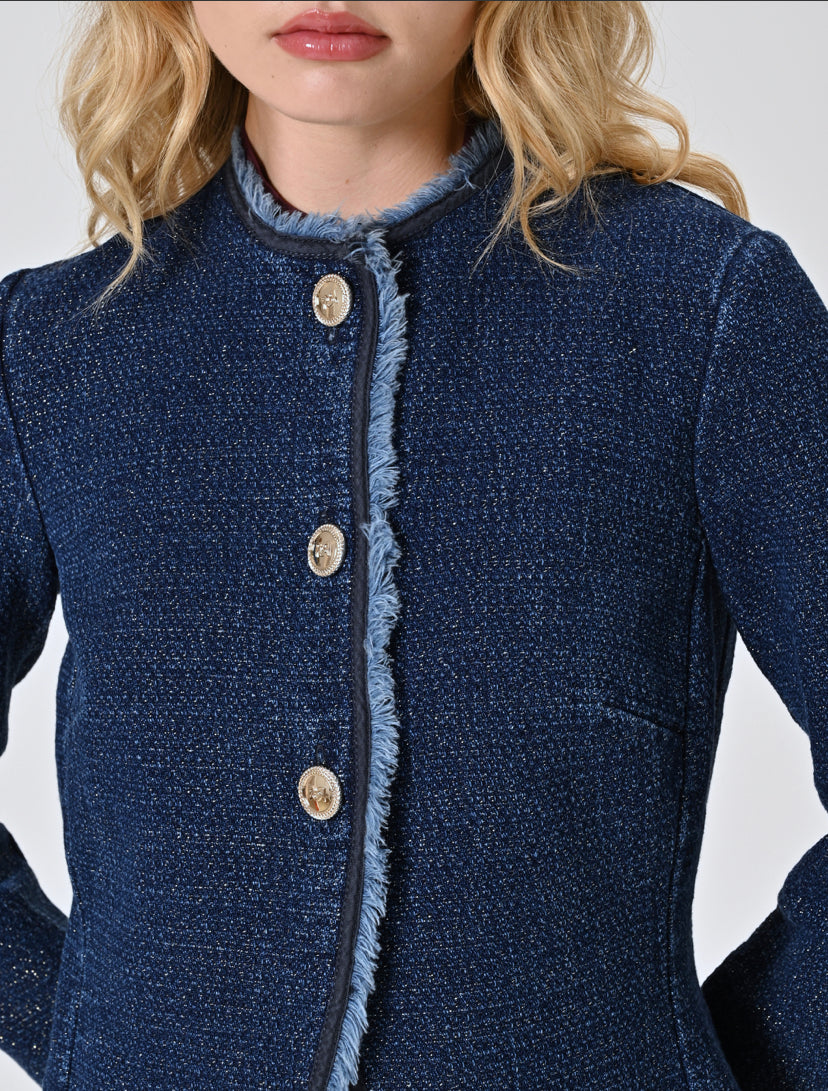 Giacca chanel denim è perfetta per dare un tocco ricercato ai look quotidiani.