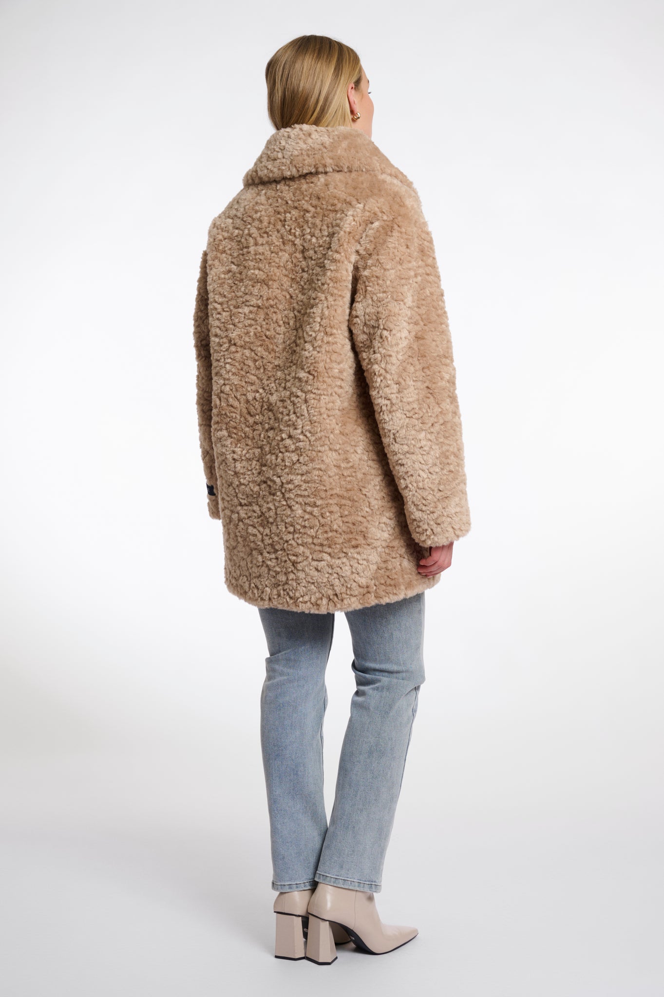 Cappotto teddy midi è una giacca in pelliccia con una lunghezza intermedia.