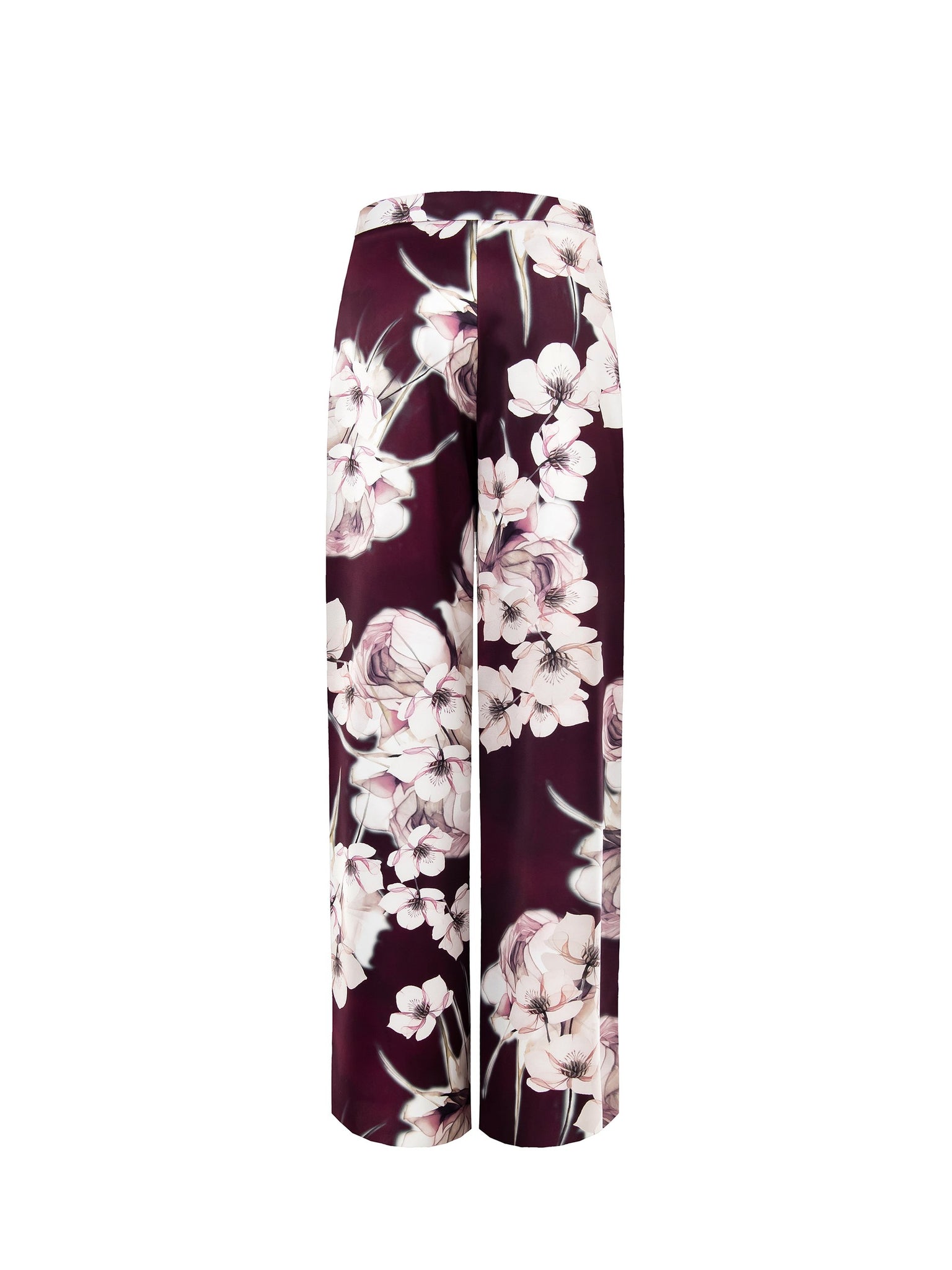Il fondo è bordeaux con stampa sui toni del rosa e del panna.