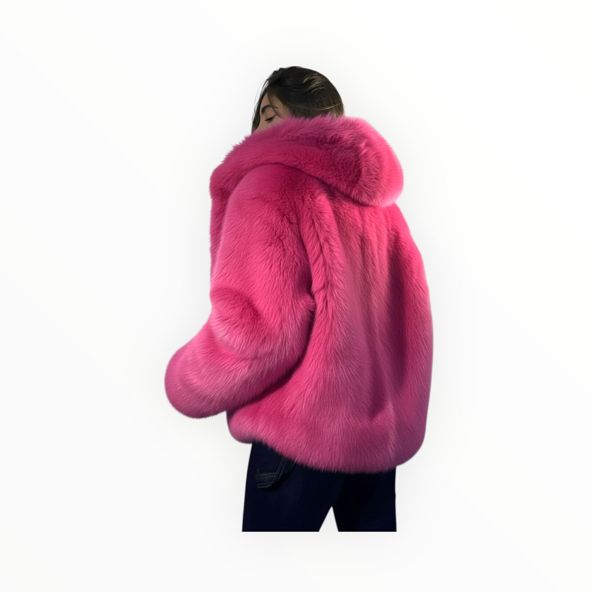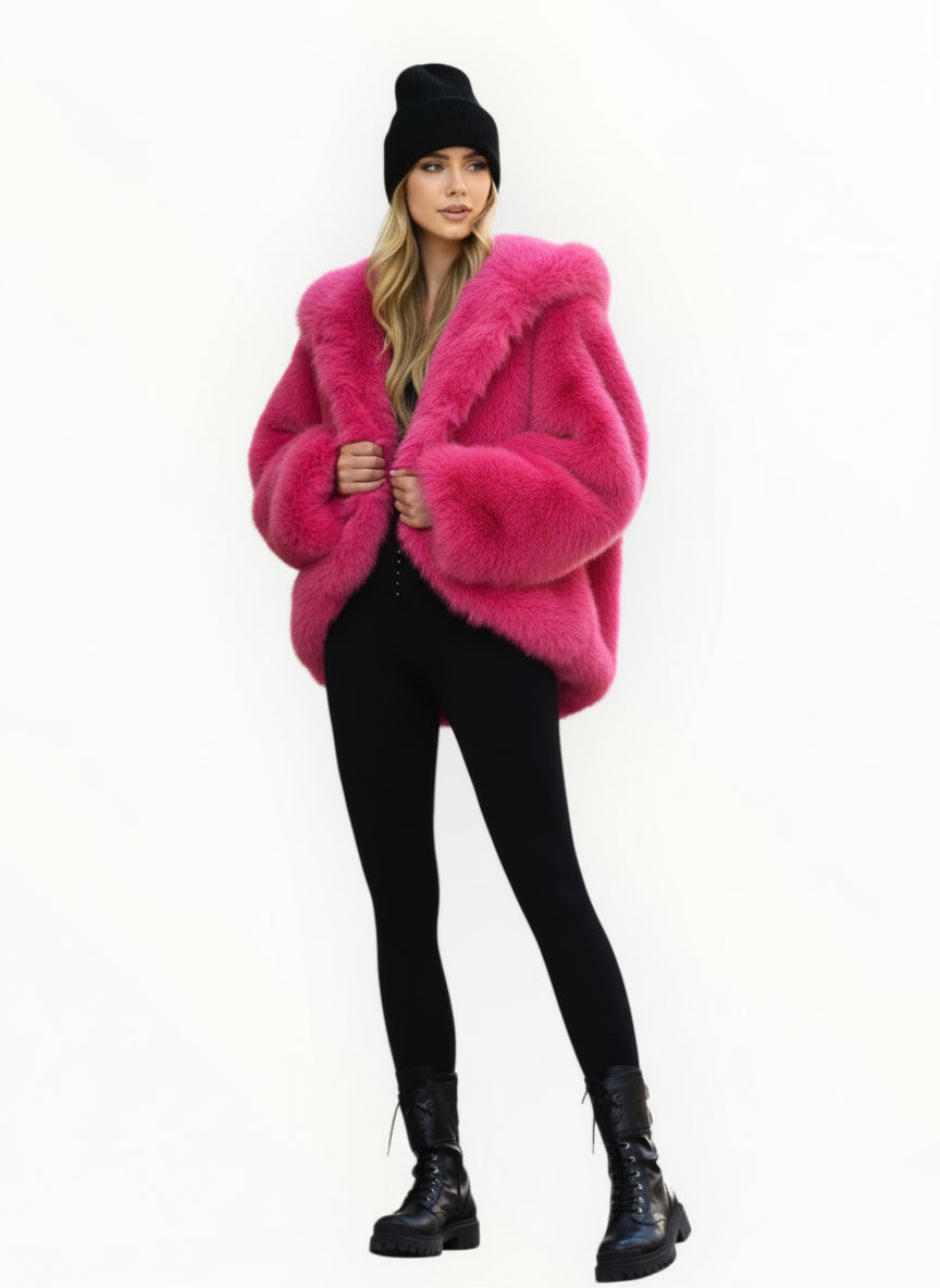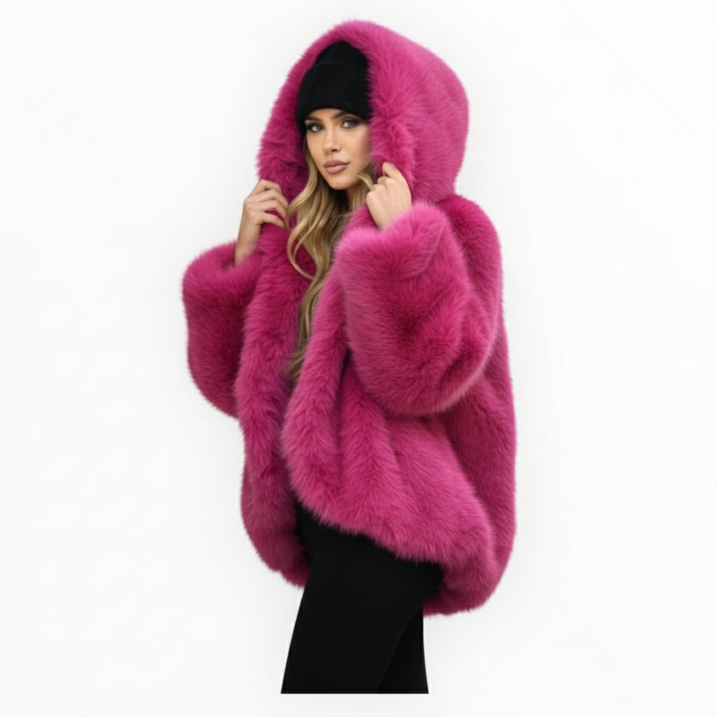 Ampio ed avvolgente giubbino in ecopelliccia.