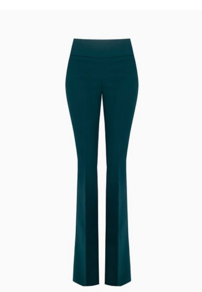 Pantalone dritto leggermente ampio in fondo in tessuto elasticizzato. Chiusura con zip a scomparsa.